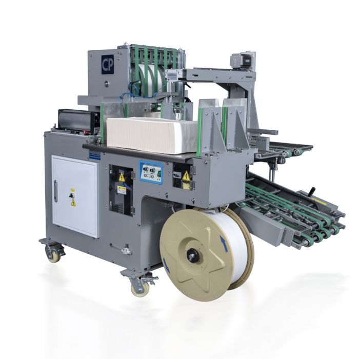 Vertical Stacker and Bundling Delivery, own a high storage capacity for folded or bound products that is therefore particularly suitable for the processing of medium to large runs, the integrated pressing unit exhausts air to improve the folding quality, and the delivery combines with the bundling device, can setting the signature stack number, flapping the stack neat, then push to the bundling station, pressing and bundling the folded sheets (signatures), brochures, book blocks, etc., with 3000N pressure, it is fitting for industrial signature production, and is perfect for the next post-press production.